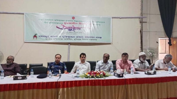 নড়াইলে নতুন প্রজন্মকে মুক্তিযুদ্ধের চেতনায় উদ্বুদ্ধকরণের লক্ষে বীর মুক্তিযোদ্ধারা স্কুল ও মাদ্রাসা শিক্ষার্থীদের শোনালেন যুদ্ধকালীন বীরত্বগাথা গল্প। বুধবার জেলা শিল্পকলা একাডেমীর হল রুমে স্কুল ও মাদ্রাসার শিক্ষার্থীদের নিয়ে ‘বঙ্গবন্ধুর আদর্শ