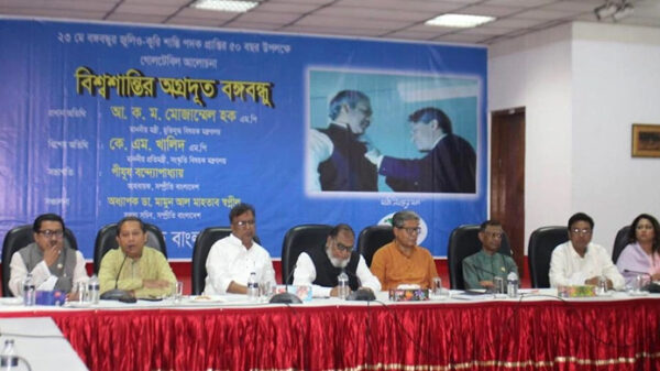 জাতির পিতা বঙ্গবন্ধু শেখ মুজিবুর রহমানের জুলিও-কুরি পদক প্রাপ্তির ৫০ বছর পূর্তিতে রাজধানীর সিরডাপ মিলনায়তনে এক গোলটেবিল আলোচনা অনুষ্ঠানের আয়োজন করে সম্প্রীতি বাংলাদেশ। আলোচনায় বক্তারা বলেন, আজকের এ দিনে আমাদের