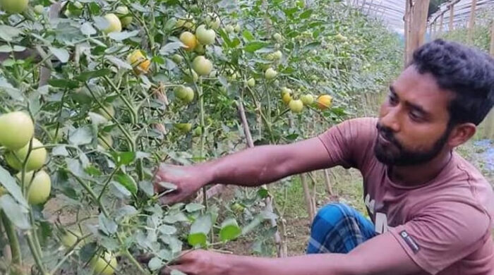 জেলার ব্রাহ্মণপাড়া উপজেলার শশীদল ইউনিয়নের নারায়ণপুর গ্রামের মেধাবী ছাত্র খাইরুল আলম। পড়াশোনার পাশাপাশি নিজের জমিতে বারি-৪ টমেটো চাষ করেছেন। ফলনও হয়েছে চমৎকার। খাইরুল বাসসকে জানান, নারায়ণপুর গ্রামে পাহাড়ের ঢালে ১৬০ শতক জমিতে আধুনিক পদ্ধতিতে পলি সেট নির্মাণ করে বারি-৪ টমেটো চাষ করেছেন।