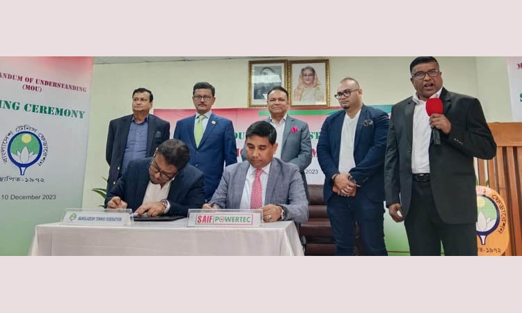 টেনিস খেলার উন্নয়নে দু'বছরের জন্য বাংলাদেশ টেনিস ফেডারেশন ও সাইফ পাওয়ারটেক লিমিটেডের মধ্যে একটি সমঝোতা স্মারকপত্র স্বাক্ষরিত হয়েছে।