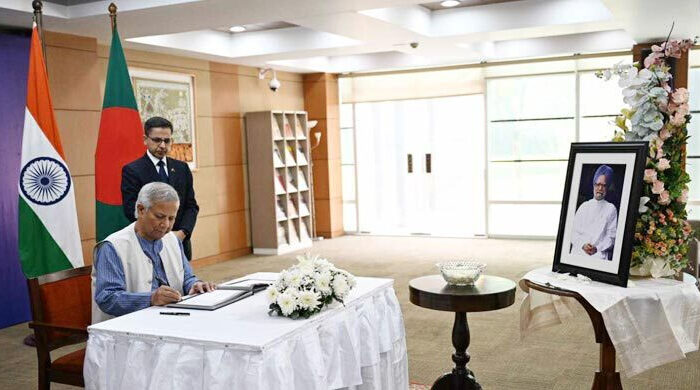 অন্তর্বর্তী সরকারের প্রধান উপদেষ্টা ড. মুহাম্মদ ইউনূস প্রয়াত ভারতীয় সাবেক প্রধানমন্ত্রী মনমোহন সিংয়ের প্রতি গভীর শ্রদ্ধা জানিয়েছেন। মঙ্গলবার (৩১ ডিসেম্বর) ড. ইউনূস ঢাকার ভারতীয় হাই কমিশন পরিদর্শন করেন এবং প্রয়াত