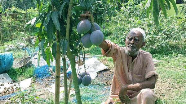 সারি-সারি আম গাছ। সবুজ পাতার মধ্যে ধরে আছে মিয়াজাকি বা সূর্যডিম, চিয়াংমাই, ডকমাই, ব্রুনাই কিং, আমেরিকান পালমা, কিউযায়সহ নানা প্রজাতির বিদেশি জাতের আম। এমন দৃশ্য দেখা যায়- ব্রাহ্মণবাড়িয়ার আখাউড়ার দেবগ্রাম
